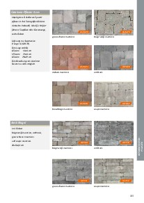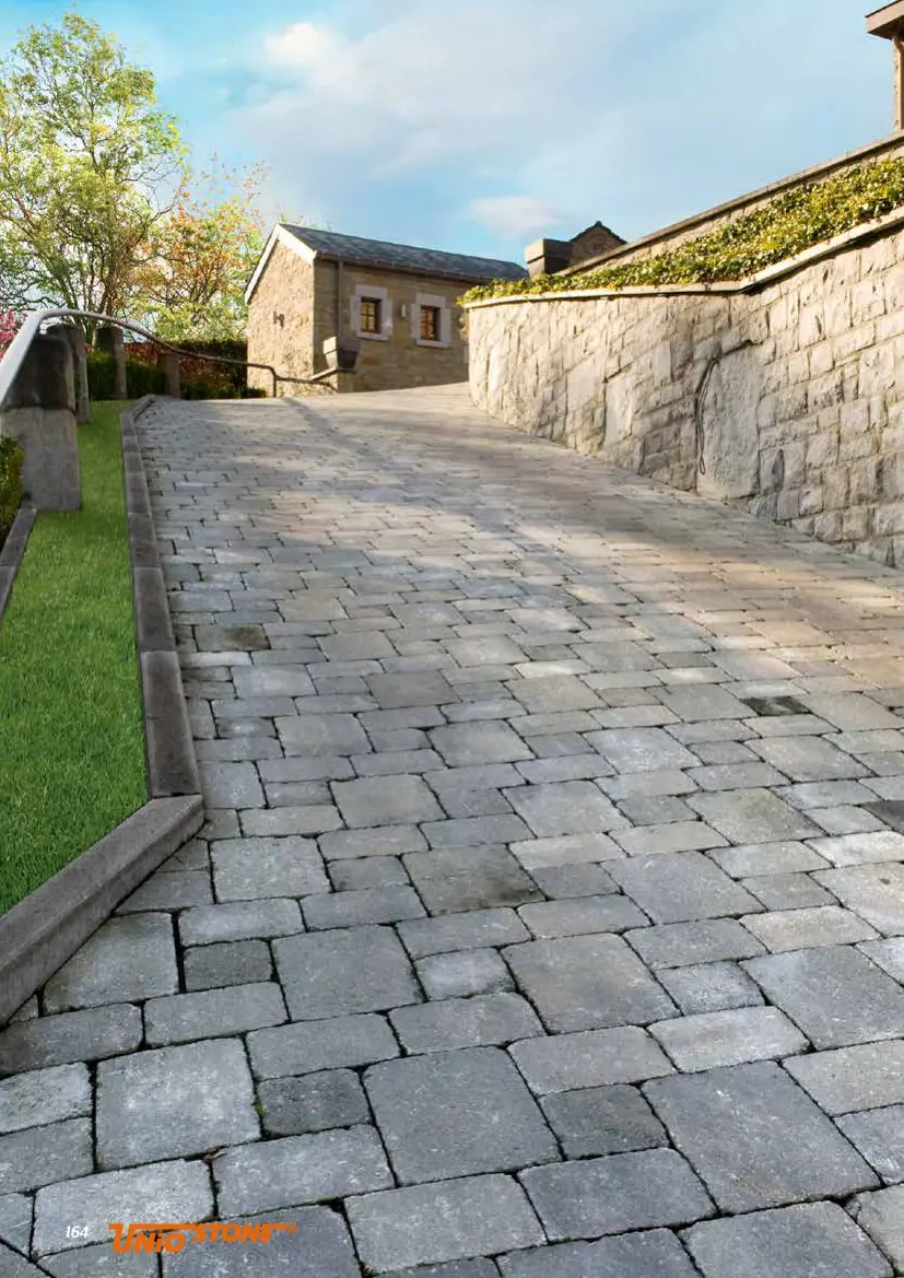 165  Catalonia-Pflaster 6 cm  Imprägniert. Gekollertes System-  pflaster in drei Steingrößen (kleiner   römischer Verband). Ideal für Hofein-  fahrten, Sitzplätze oder Gartenwege,   sechs Farben.  Lieferung nur lagenweise  (1 Lage = 0,824 m2).  Eine Lage enthält: 6 Steine   14x14 cm 12 Steine   21x14 cm 6 Steine   28x21 cm  Eine Bestellung von einzelnen  Steinen ist nicht möglich.  Antik Riegel  In 4 Farben:   beige-weiß nuanciert, anthrazit,   grau-schwarz nuanciert   und taupe nuanciert.  20x5x6,4 cm  grau-schwarz nuanciert beige-weiß nuanciert  UST9470 UST9276  rotbunt nuanciert  UST9473  anthrazit  UST9475  braunbeige nuanciert  UST9474  beige-weiß nuanciert  UST1130  grau-schwarz nuanciert  UST1131  anthrazit  UST1132  taupe nuanciert  UST1133  taupe nuanciert  UST9477  BETONWERKSTEIN- PFLASTER